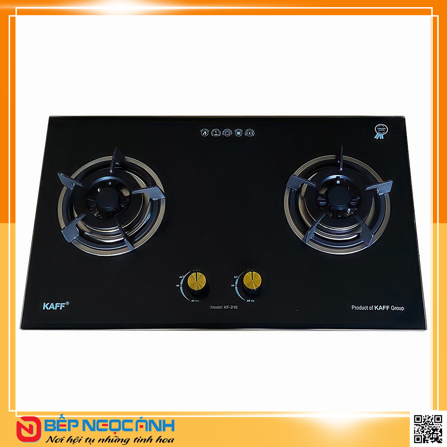 + Bếp gas âm kính dày 8mm màu sọc đen 02 lò
