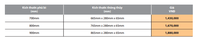 Kích thước sản phẩm (mm): Rộng x Sâu x Cao: W865 x D280x H65