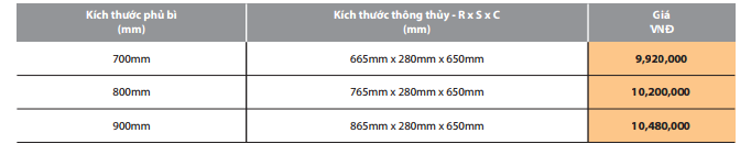 Kích thước sản phẩm (mm): Rộng x Sâu x Cao: W865 x D280x H650