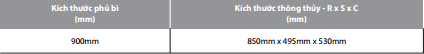 Kích thước sản phẩm (mm): Rộng x Sâu x Cao: W850 x D495 x H530
