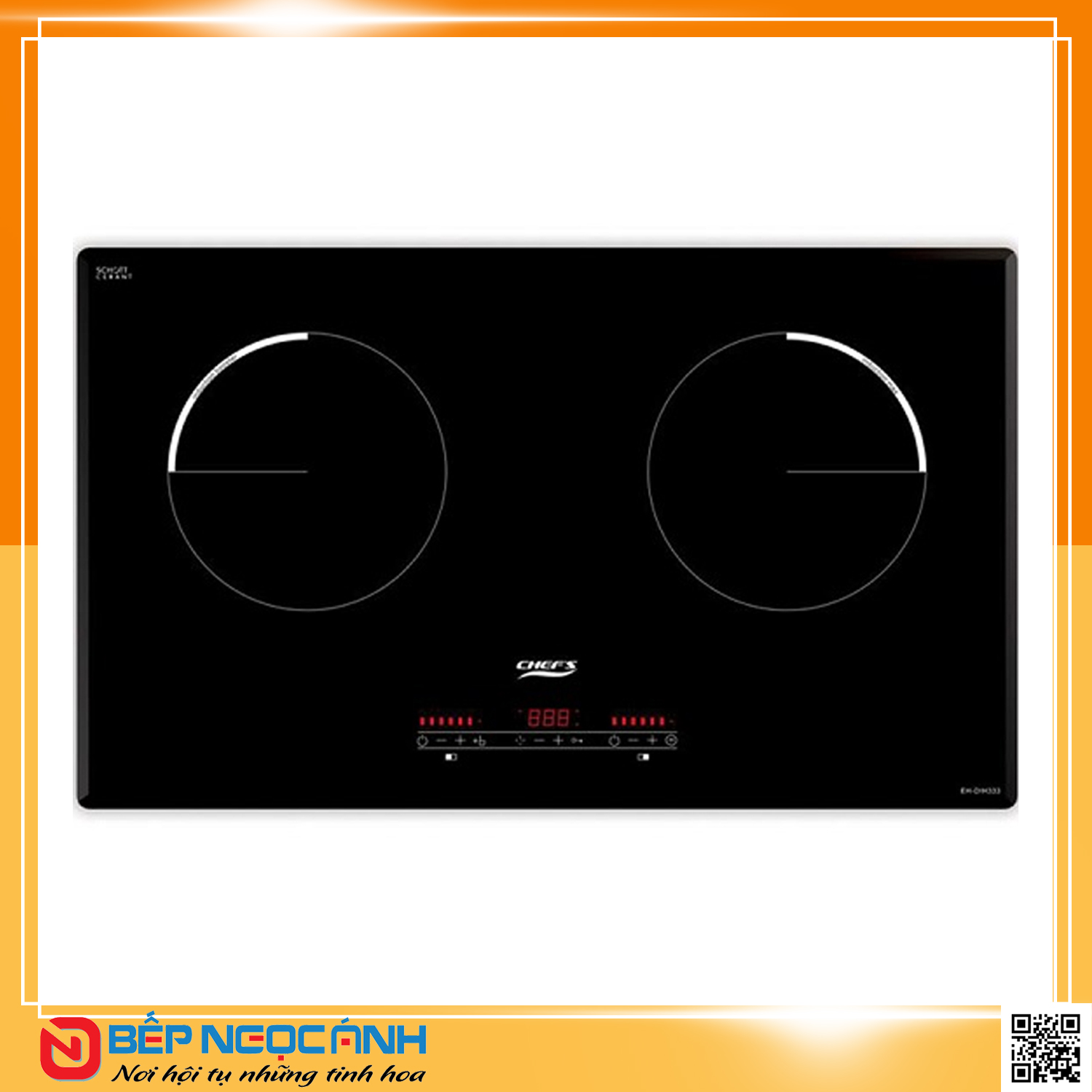 | Tính năng sản phẩm* Đun nấu siêu tiết kiệm với bếp từ chefs EH-DIH333 * Mặt kính ceramic chịu nhiệt Schott Ceran vát cạnh – Germany * Linh kiện E.G.O nhập khẩu từ CHLB Đức * Bếp trái đường kính 22cm , hỗ trợ tính năng nấu nhanh Booster – max 3000W – Germany * Bếp phải đường kính 22cm, công suất max 1400W – Germany * Bàn phím cảm ứng, điều khiển riêng từng vùng nấu * Hẹn giờ độc lập cho từng vùng nấu, thời gian hẹn đến 9.30 phút * Tự động chia sẻ công suất giữa 2 bếp, max 3600W * Hiển thị mức công suất bằng led bar |