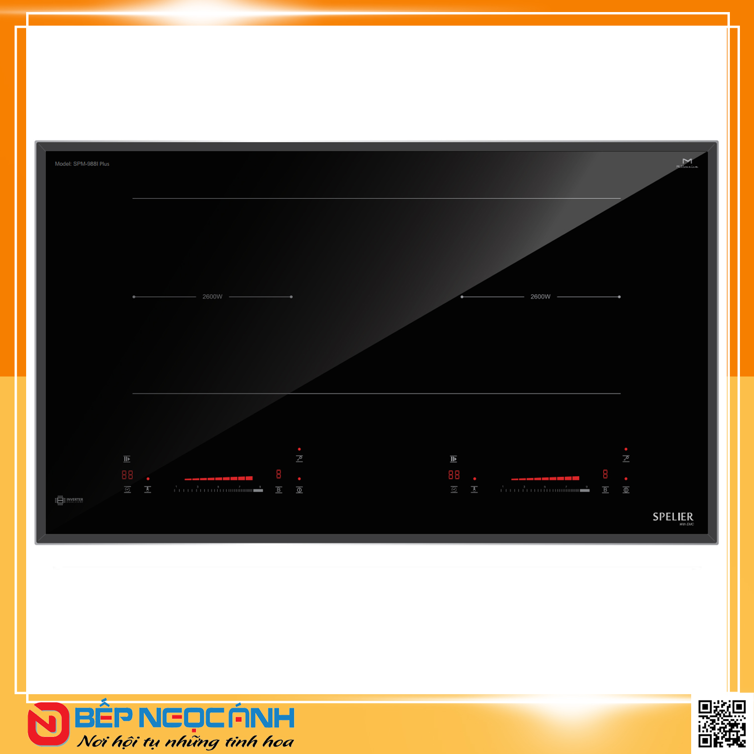 • 02 vùng nấu cảm ứng từ công suất: 2200W – 2200W