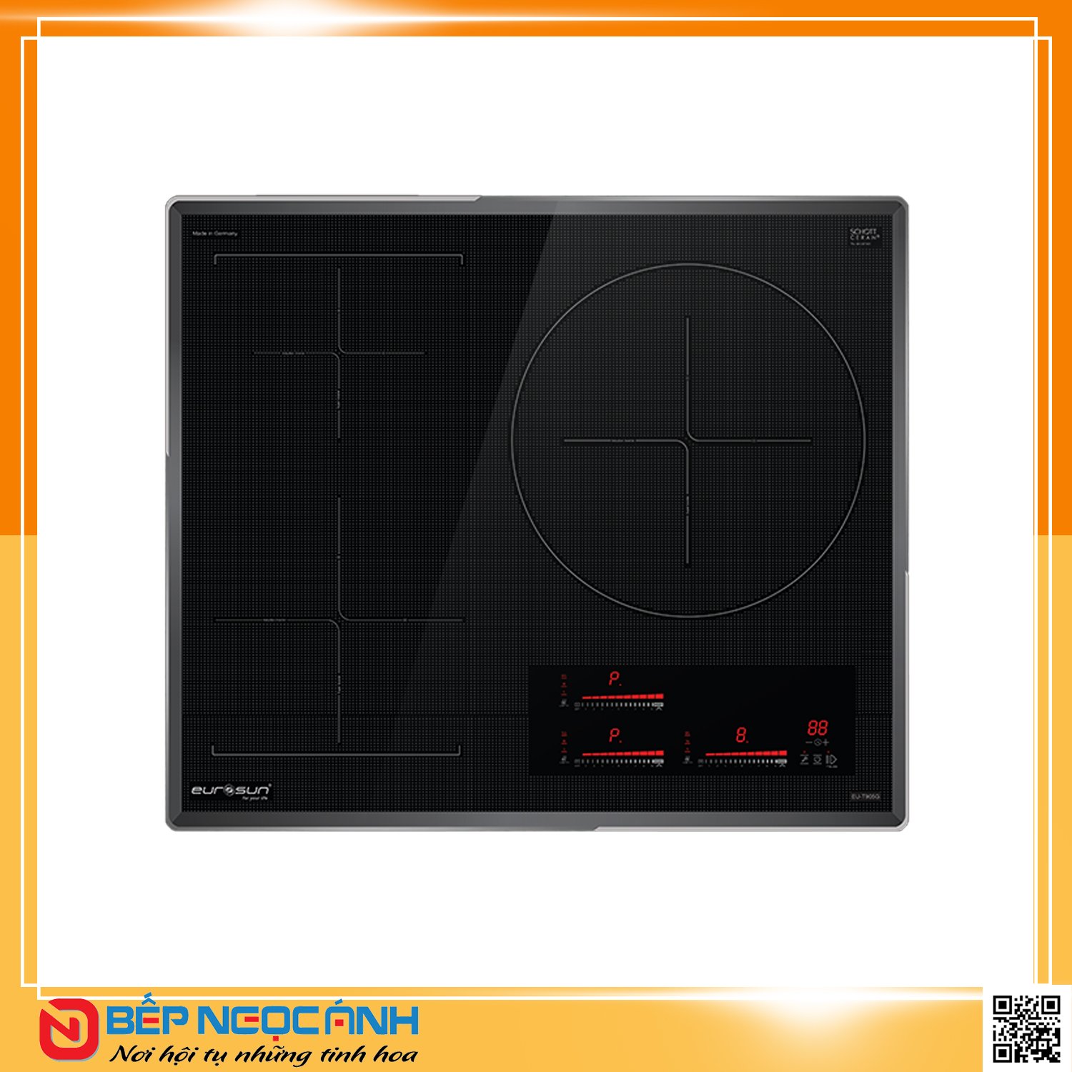 ♦ Bếp từ EU- T905G có 3 vùng nấu cảm ứng từ, giúp bạn có thể đồng thời chế biến các món ăn khác nhau một cách nhanh chóng, tiện lợi. Thiết kế tinh tế, tối giản mang phong cách thời thượng. Mặt bếp được thiết kế hình chấm bi hình lưới vuông chống trượt nồi và chống xước mặt kính.