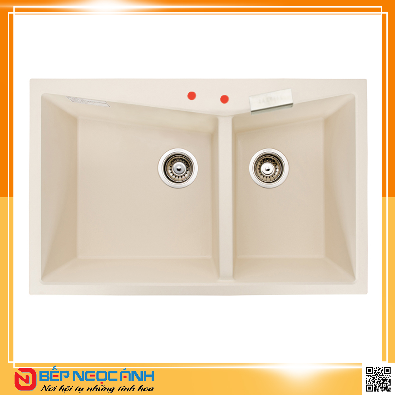 hình ảnh Chậu rửa chén bằng đá đôi granite LMC1 và chi tiết bộ xả đôi