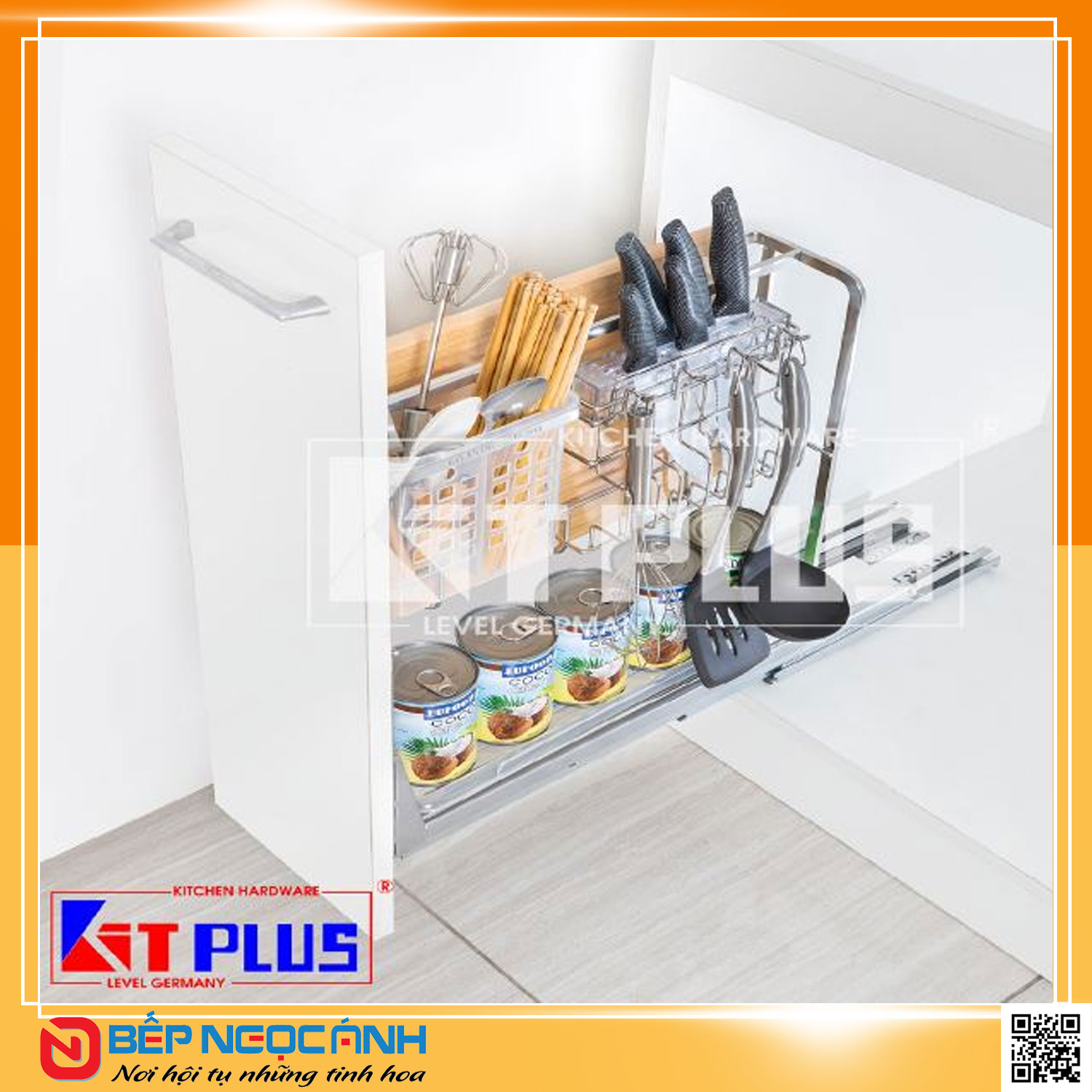 Ưu điểm nổi bật của Giá dao thớt nan dẹt inox mờ, ray giảm chấn Kit Plus EC VIP.20