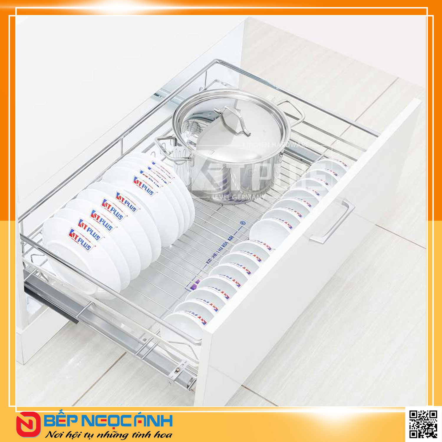 Ưu điểm của sản phẩm: Giá xoong nồi, bát đĩa đa năng nan dẹt inox mờ Kit Plus BM VIP.75