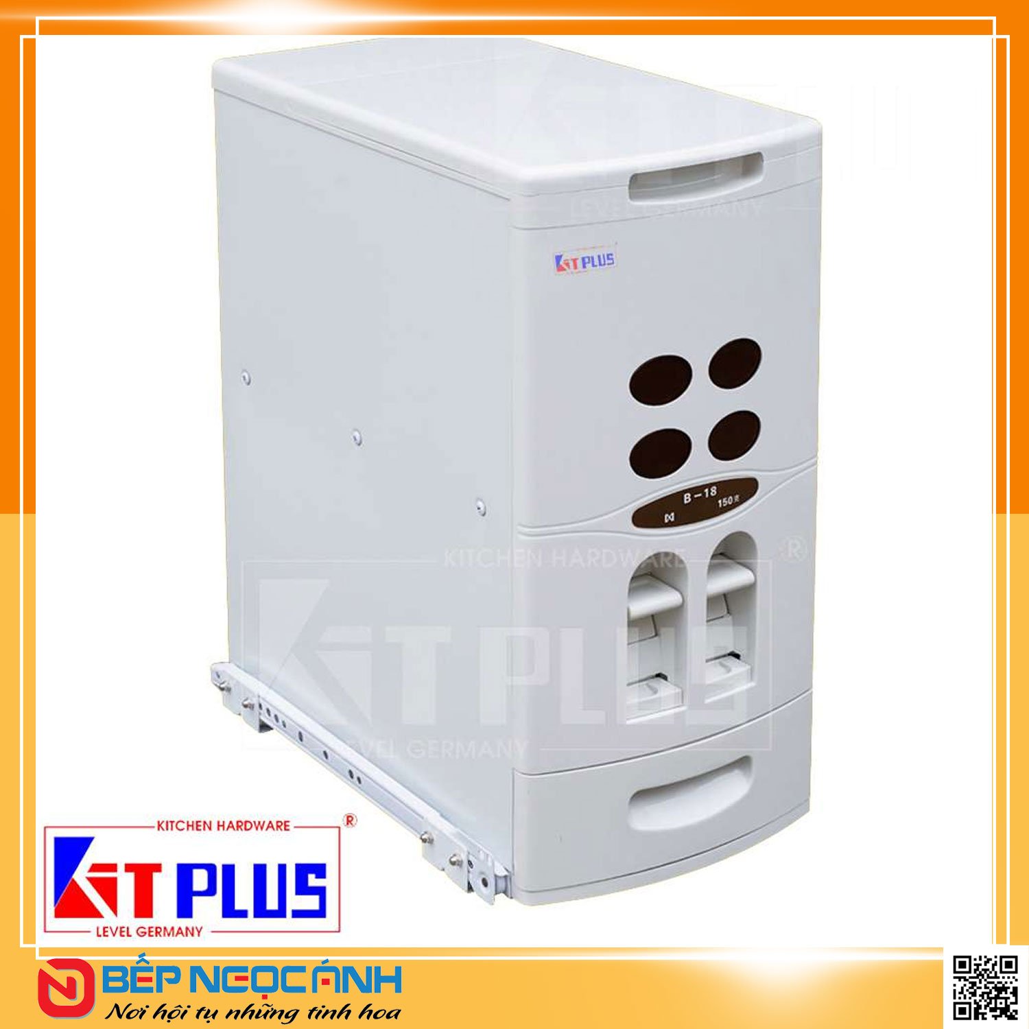 Thông số kĩ thuật của sản phẩm: Thùng gạo âm tủ 2 nút ấn thông minh Kit Plus DB.18